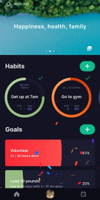 Higher Goals lets you keep a dashboard of your habits and goals, so you can update them anytime, anywhere. Most importantly, you can customize colors and images to make it your own, a space for your most important ideas.