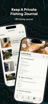 Fishing Journal: Keep your personal fishing journal on your phone, where you can record the days conditions, your locations, fish caught, and more.