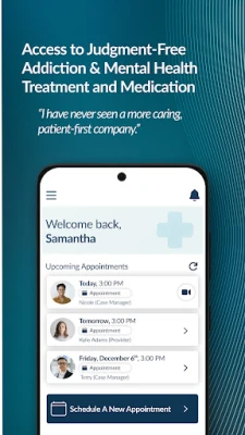 Treatment happens on your time, wherever is convenient for you. You will have access to on-demand check-ins with your Case Manager, at-home drug screenings, self-assessments, and regular therapy and MAT appointments. During these appointments, we encourage you to bring up any questions or concerns you might have.